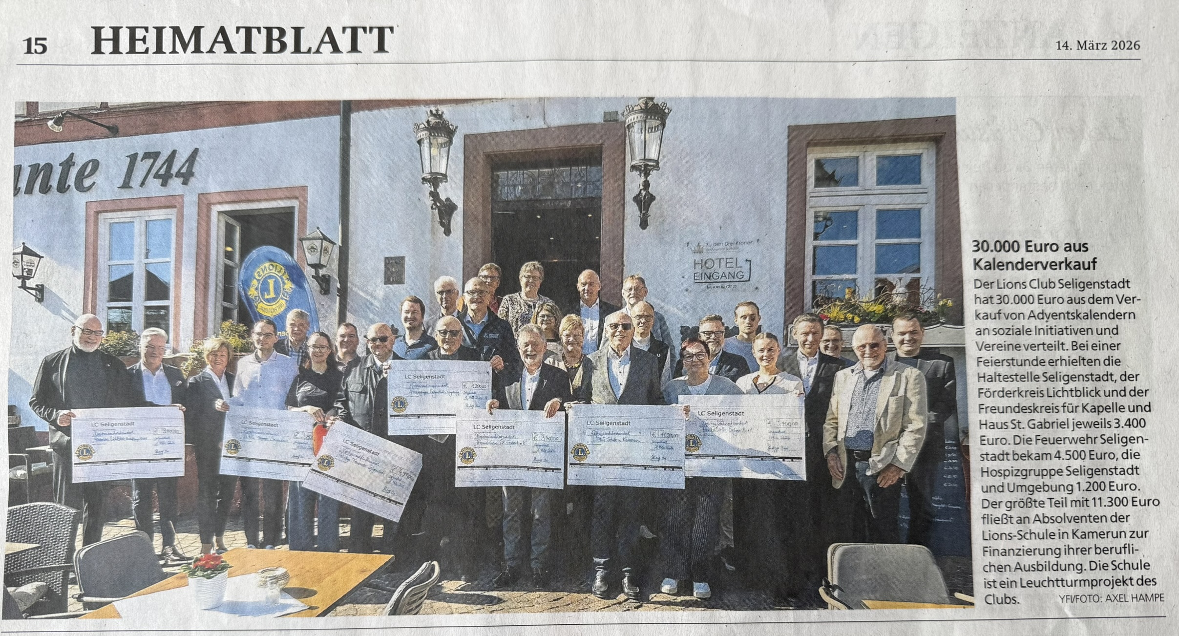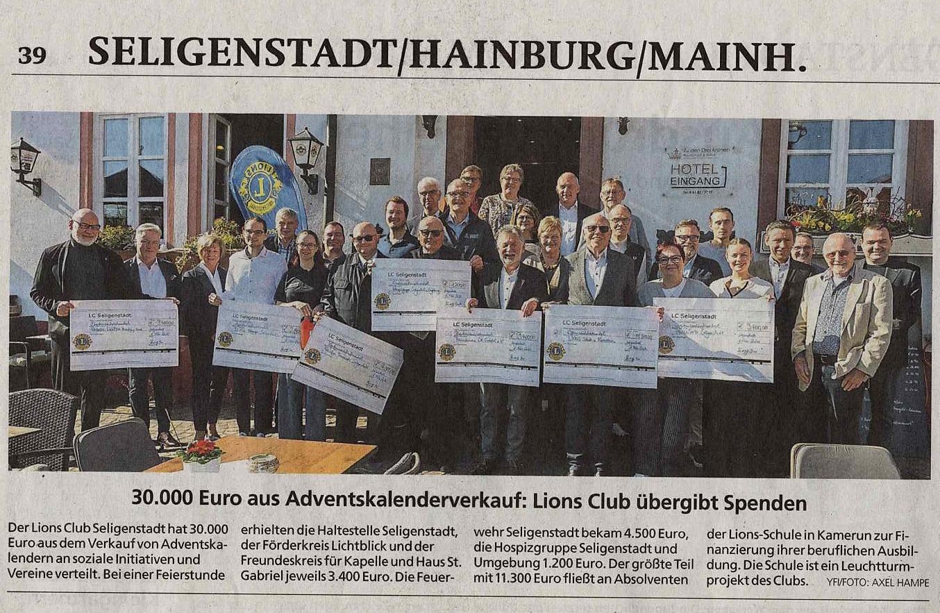 Lions Club Seligenstadt verteilt 30.000 Euro aus Kalenderverkauf